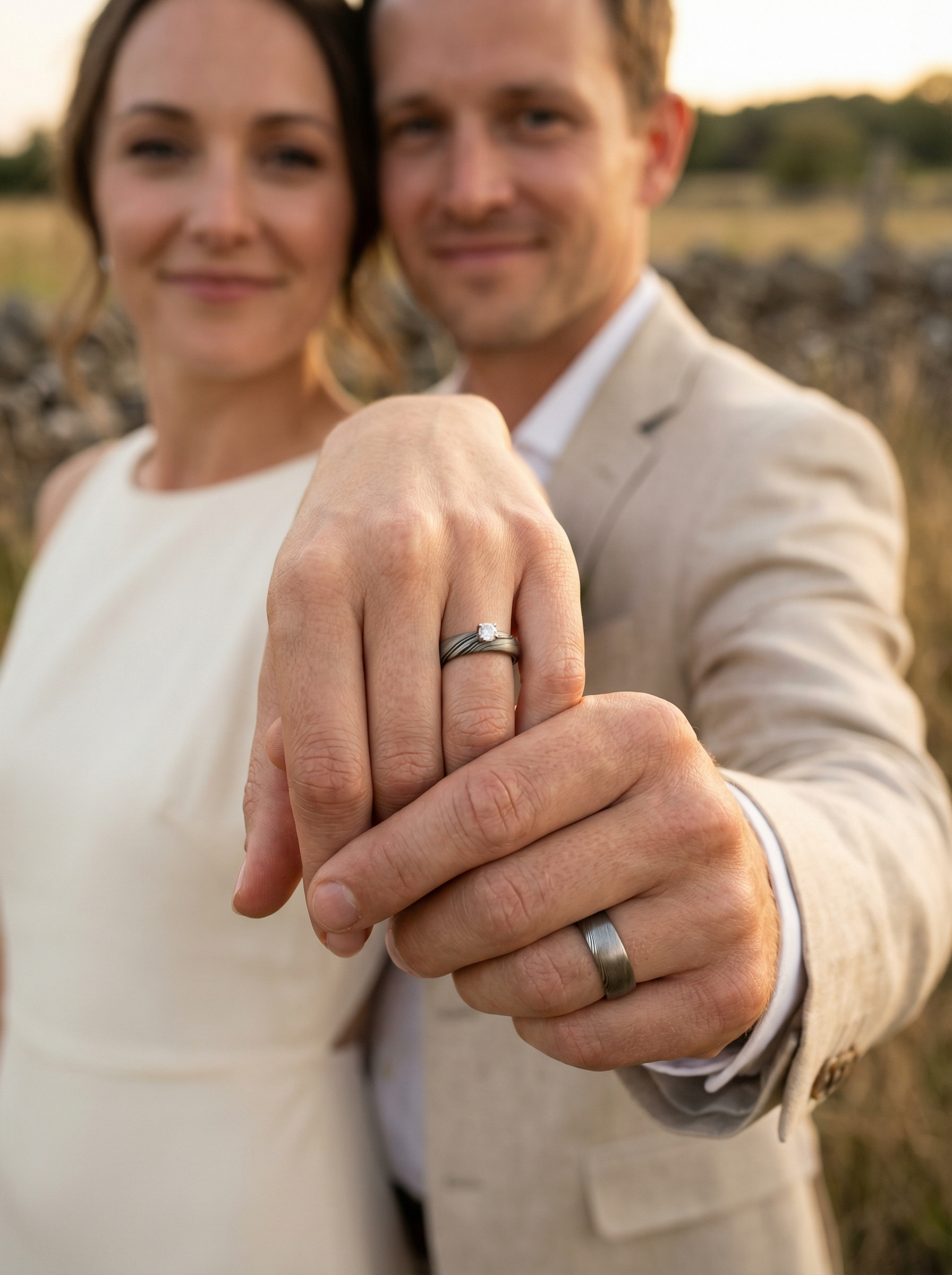 Damascus steel rings are popular among men searching for alternative wedding bands. They offer texture, character, and a handcrafted appearance that stands out from plain metal bands.