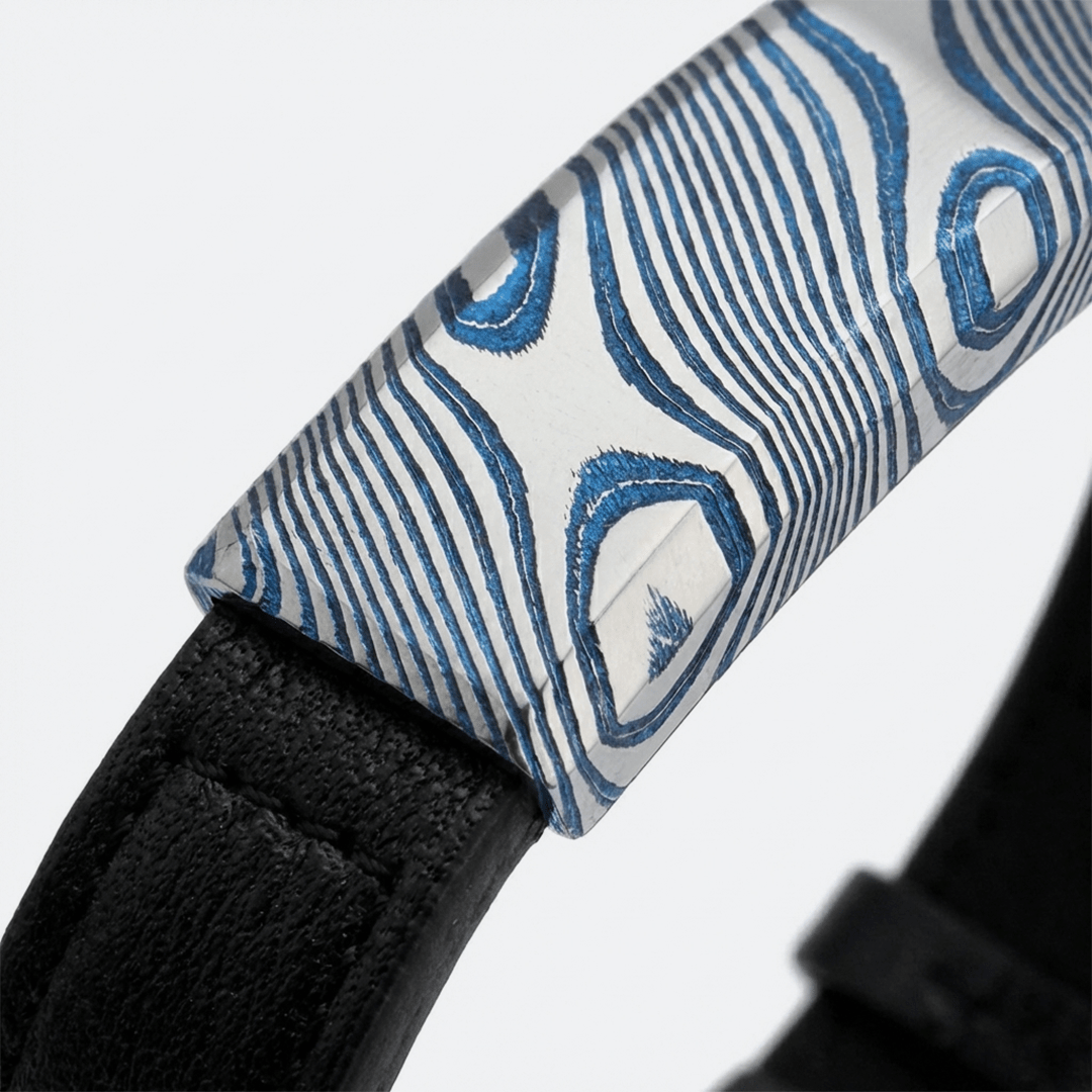 Take your katana with you wherever you go. This hand-forged bracelet is made from Damascus steel used in katanas.