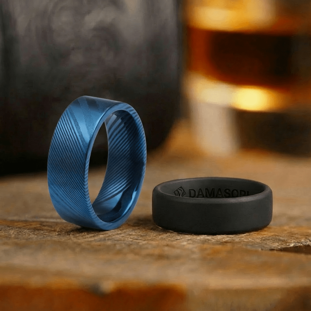 The Damasori Rings are crafted with a dual-layer design; an outer beveled edge for on-hand comfort and an inner convex shape for a comfortable, no-pinch fit.