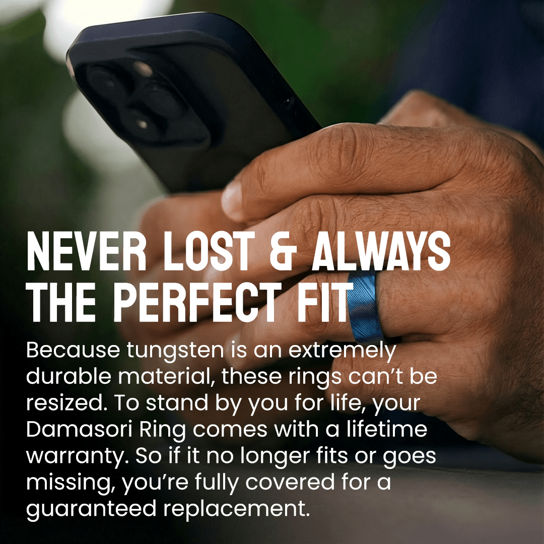 Whether you lose your ring or lose 20 lbs, we’ve got you covered with the Never Lost and Forever Fit Protection. Each purchase of a Damasori comes with the option of future exchanges for the same ring in the same or different size.