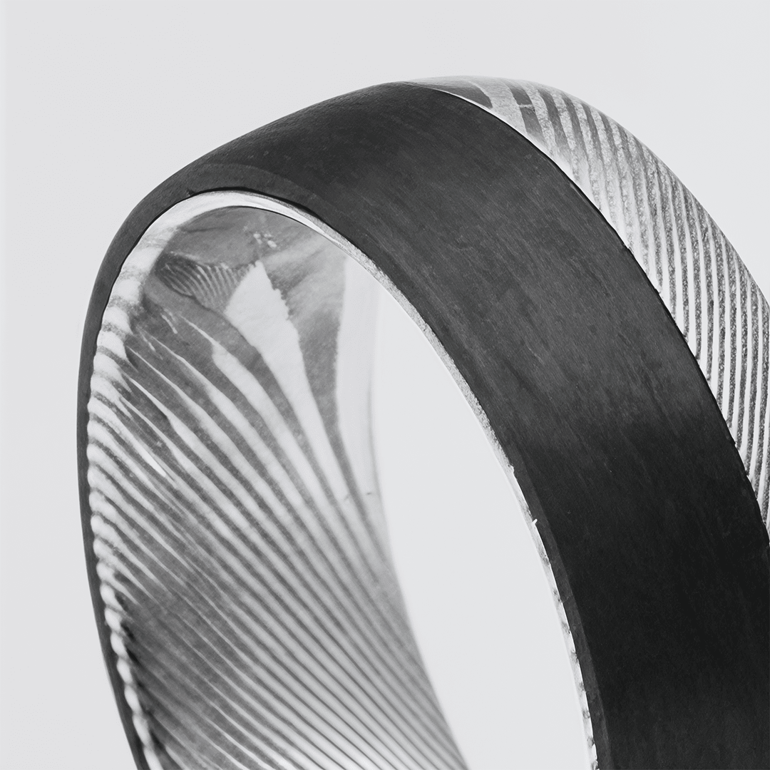 The Damasori Rings are crafted with a dual-layer design; an outer beveled edge for on-hand comfort and an inner convex shape for a comfortable, no-pinch fit.