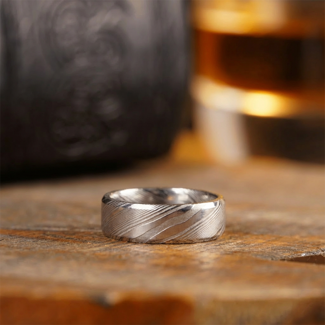 Take your katana with you wherever you go. This hand-forged ring is made from Damascus steel used in katanas.