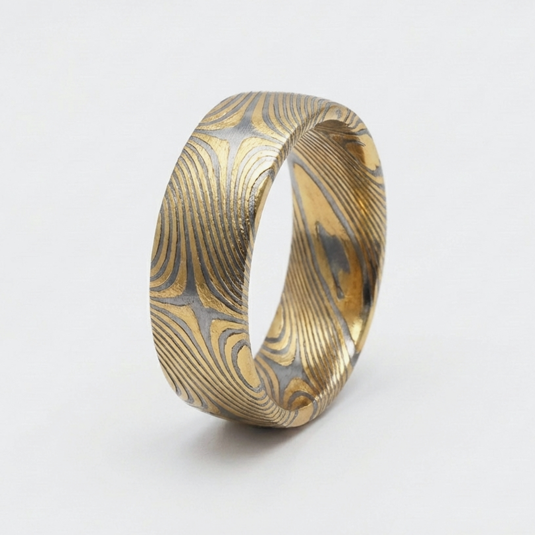 Take your katana with you wherever you go. This hand-forged ring is made from Damascus steel used in katanas.