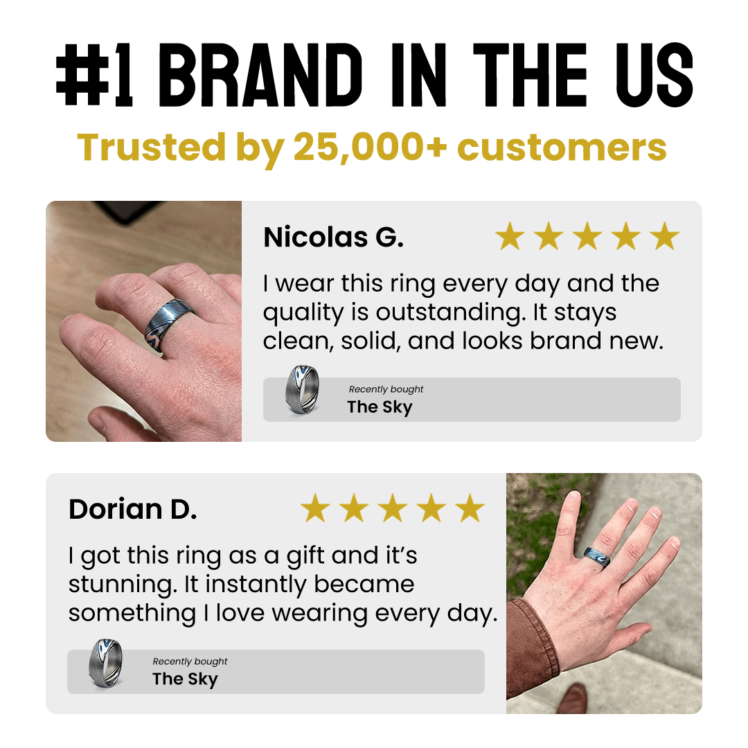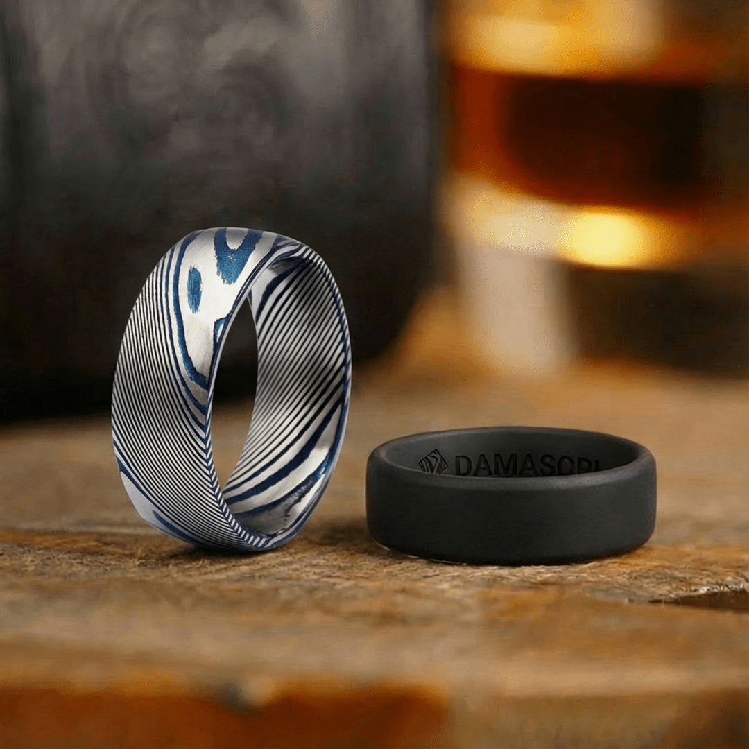 The Damasori Rings are crafted with a dual-layer design; an outer beveled edge for on-hand comfort and an inner convex shape for a comfortable, no-pinch fit.