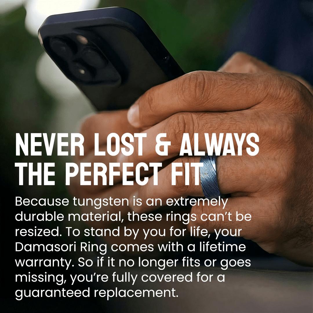 Whether you lose your ring or lose 20 lbs, we’ve got you covered with the Never Lost and Forever Fit Protection. Each purchase of a Damasori comes with the option of future exchanges for the same ring in the same or different size.